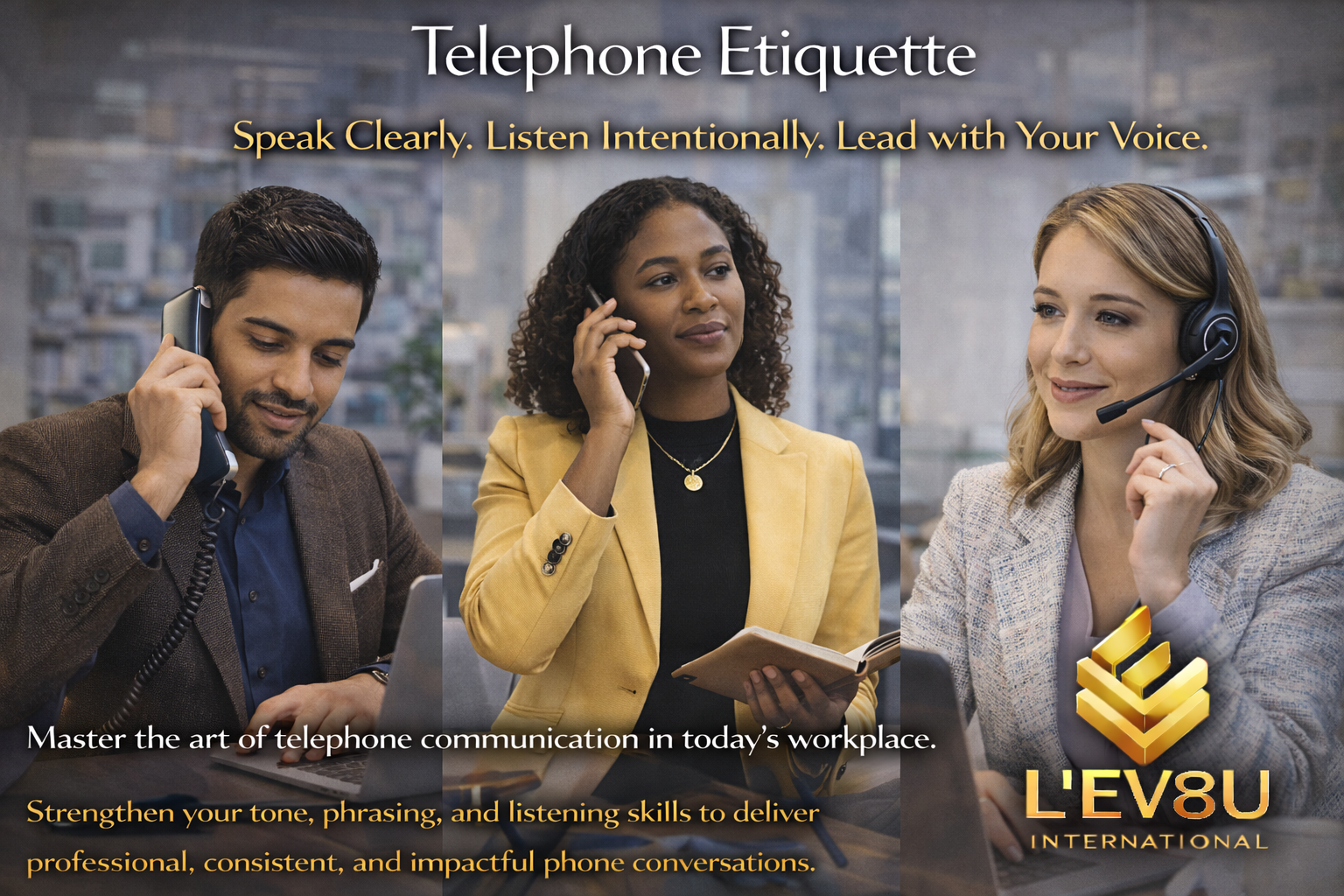 Telephone Etiquette focuses on developing confident and effective telephone communication skills. Learners will explore tone, phrasing, listening techniques, and strategies for managing challenging calls. Emphasis is placed on professionalism, clarity, and consistency in both inbound and outbound telephone interactions.