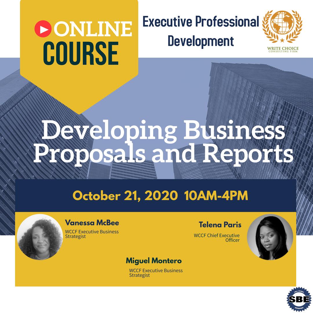 WCLI Developing Business Proposals and Reports Details Date: October 18 Time: 10:00 am - 04:00 pm Click to Register: https://www.eventbrite.com/e/wcli-developing-business-proposals-and-reports-tickets-393077133287 Organizer Write Choice Consulting Firm Website: https://www.eventbrite.com/o/write-choice-consulting-firm-17421207749